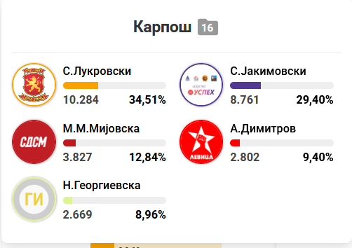 Во Карпош во втор круг одат кандидатот на ВМРО-ДПМНЕ, Сотир Лукровски и актуелниот градоначалник и кандидат за градоначалник, Стевчо Јакимовски.