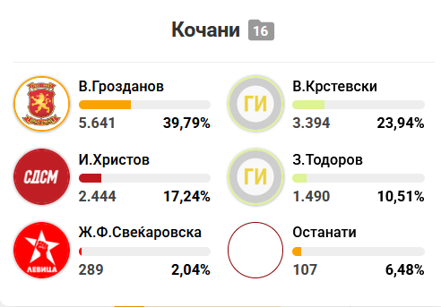 Во Кочани во втор круг одат кандидатите на ВМРО-ДПМНЕ и независниот кандидат Венко Крстевски.
