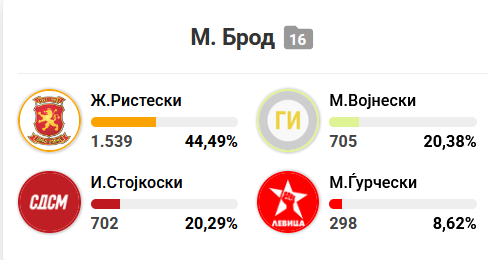Во Македонски Брод во втор круг одат кандидатот на ВМРО-ДПМНЕ и независен кандидат, исто и во Могила.