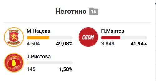 Во Неготино во втор круг одат кандидатите на ВМРО-ДПМНЕ и СДСМ.