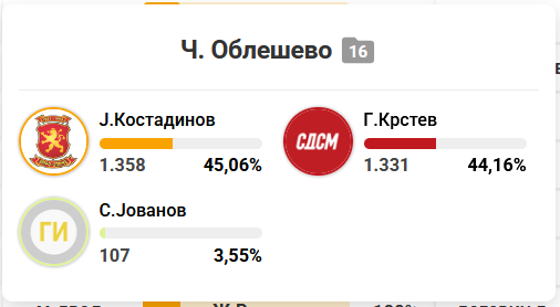 Во Чешиново Облешево во втор круг одат кандидатите на ВМРО-ДПМНЕ и СДСМ.