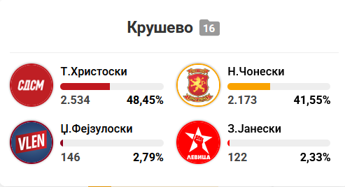 Во Крушево во втор круг ќе одат кандидатите на ВМРО-ДПМНЕ и СДСМ.
