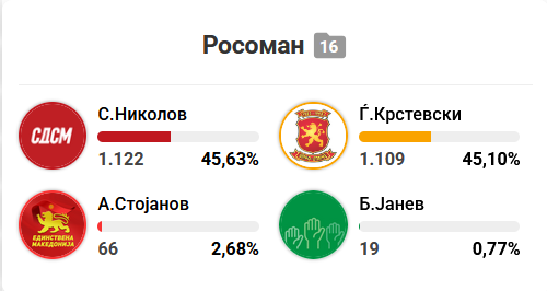 Во Росоман во втор круг одат СДСМ и ВМРО-ДПМНЕ.