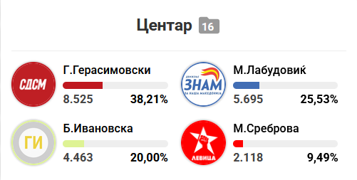 Во Центар во втор круг одат кандидатите на СДСМ и ЗНАМ.