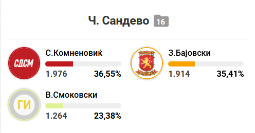 Во Чучер Сандево во втор круг одат кандидатите на СДСМ и ВМРО-ДПМНЕ.
