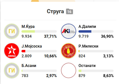 Во Струга во втор круг одат независниот кандидат поддржан од ВЛЕН и ВМРО-ДПМНЕ и кандидатот на ДУИ.