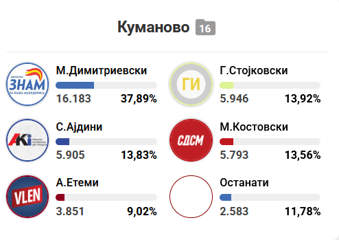 Во Куманово во втор круг одат кандидатот на ЗНАМ и независен кандидат.