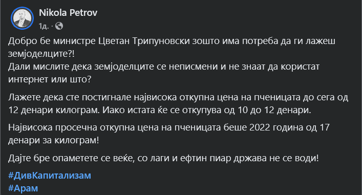– „Добро бе министре Цветан Трипуновски зошто има потреба да ги лажеш земјоделците?!