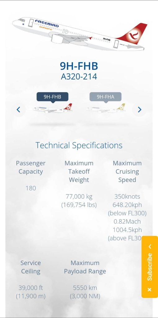 Се работи за авионот на FREEBIRD, со ознаки 9H-FHB со капацитет од 180 седишта, иако од владата отпатуваа 20-30 луѓе!