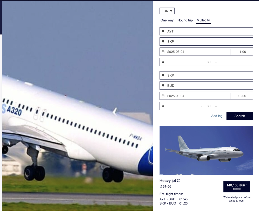Колку чини изнајмување на авионот може да се види на самата веб-страница на компанијата.