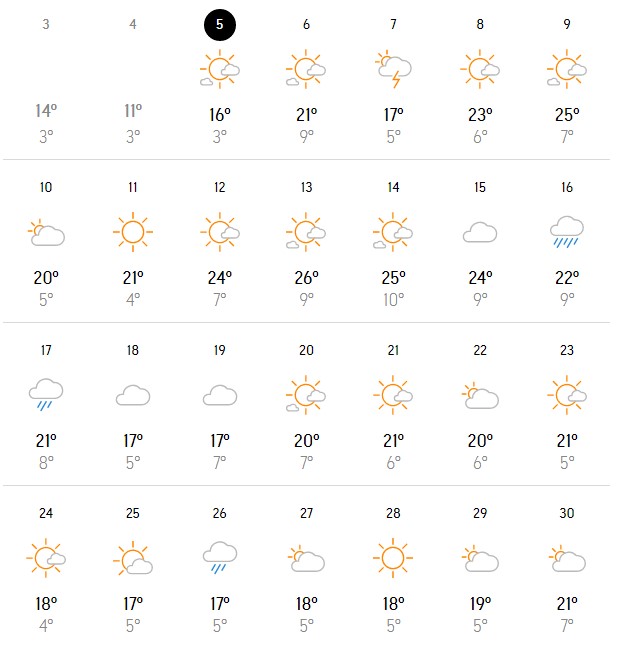 Во меѓувреме според страната „accuweather“ месецов не очекува различно време, од дожд, облаци, па се до сонце и високи температури.