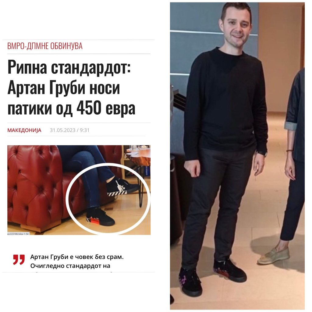 Што би рекле од ВМРО-ДПМНЕ, секако додека беа опозиција, рипна стандардот на министерот за надворешни работи, Тимчо Муцунски, кој почна да носи патики од 450 евра, иако за истите патики од неговата партија претходно му реагираа на Артан Груби.