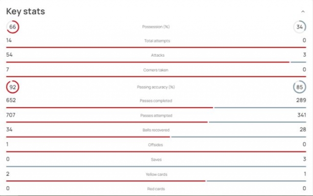 Статистиката после мечот ја отсликува сета наша мизерија. Нула шутеви, нула корнери, само три напади…