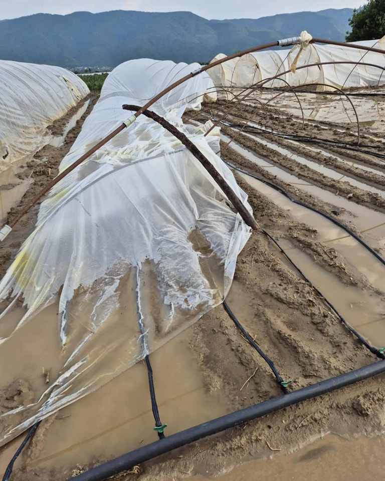 Силно невреме попладнево го погоди струмичкото село Муртино, каде има големи штети и целосно поплавени ниви и пластеници.