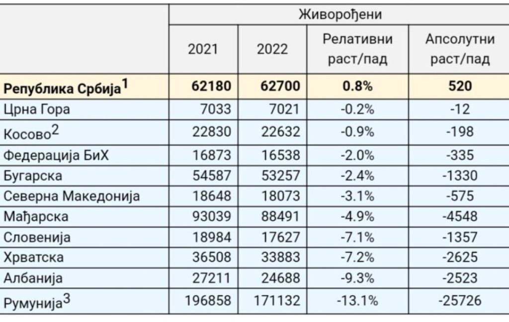 Србија е единствената земја во регионот која забележа пораст на живородените деца во однос на соседните земји во изминатите две години.