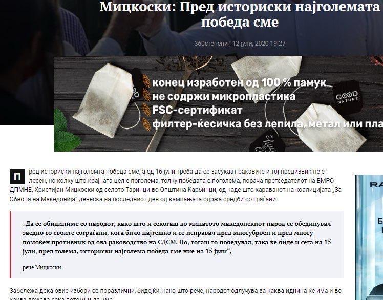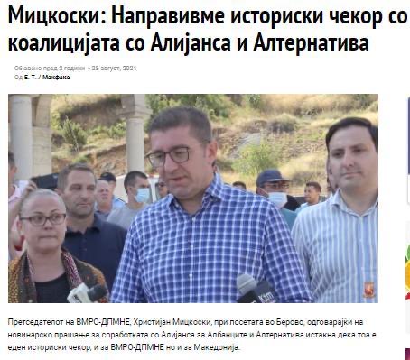 Исто така како историски чекор и за ВМРО ДПМНЕ и за Македонија, Мицкоски си ја протолкува и