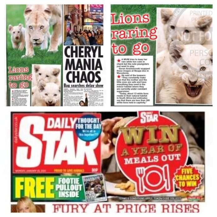 Британскиот весник „Дејли стар“ објави фотографии од белите лавчиња во скопската Зоолошка градина, укажувајќи на реткоста на овој вид.