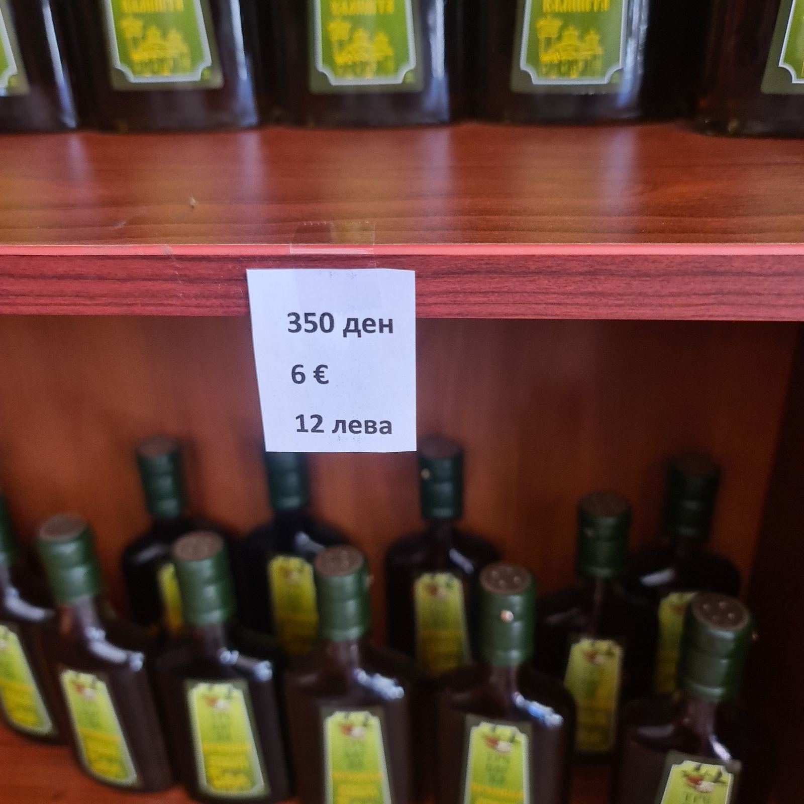 Имено како што се гледа на фотографиите цените на сувенирите, вината, маслата и останатите продукти кои се продаваат освен во денари и евра можат да се платат и во бугарски левови.