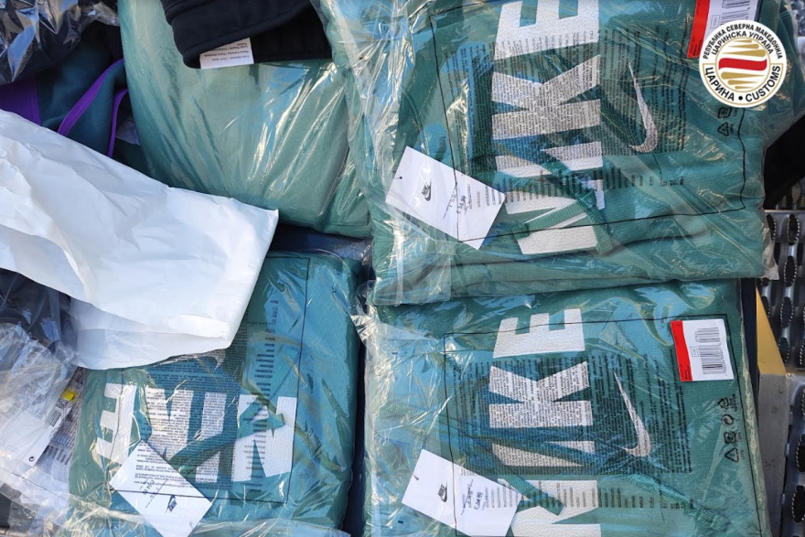 Брендираните парчиња облека и обувки од марката „Најк“ во вредност од 921.341 денар се откриени од страна на мобилните тимови при Секторот за контрола и истраги при контрола на товарно моторно возило. Возилото е скенирано со мобилен скенер, при што со детална контрола во кабината на возачот на горниот и на долниот кревет, како и во просторот до возачот се пронајдени непријавените брендирани производи.