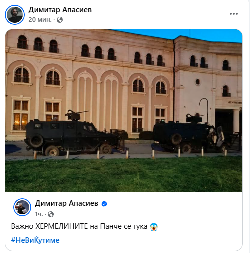Важно ХЕРМЕЛИНИТЕ на Панче се тука, пишува на Фејсбук пратеникот Димитар Апасиев кој објави и фотографии од хермелини пред Музејот на македонската борба за време на мирниот собир на Плоштадот Македонија во чест на трагично загинатите во Кочани.