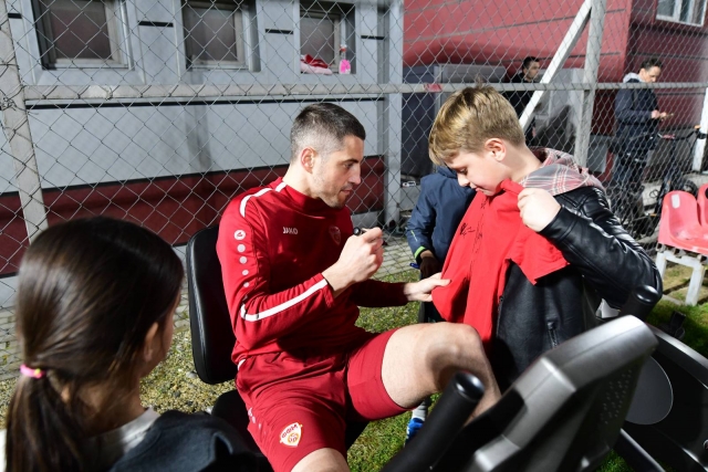 Денешниот тренинг на македонската фудбалска репрезентација почна со изненадување за фудбалерите, откако десетици дечиња ги дочекаа избраниците на Благоја Милевски, па малку се дружеа со нив, добија автограми и слики за спомен.