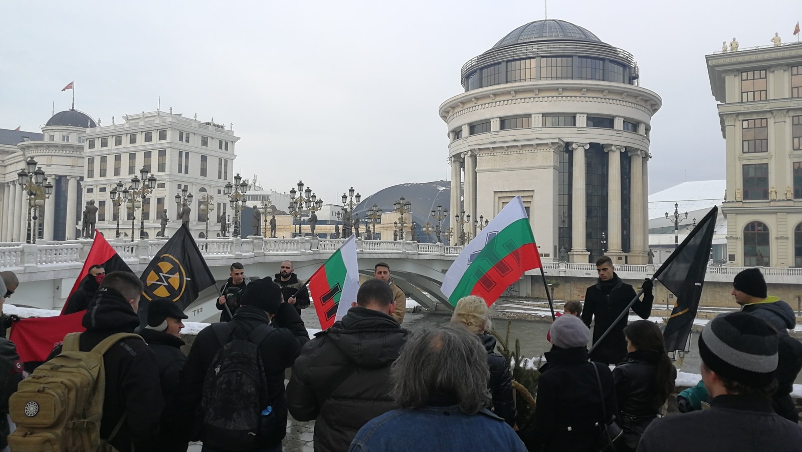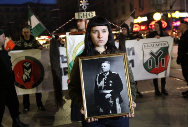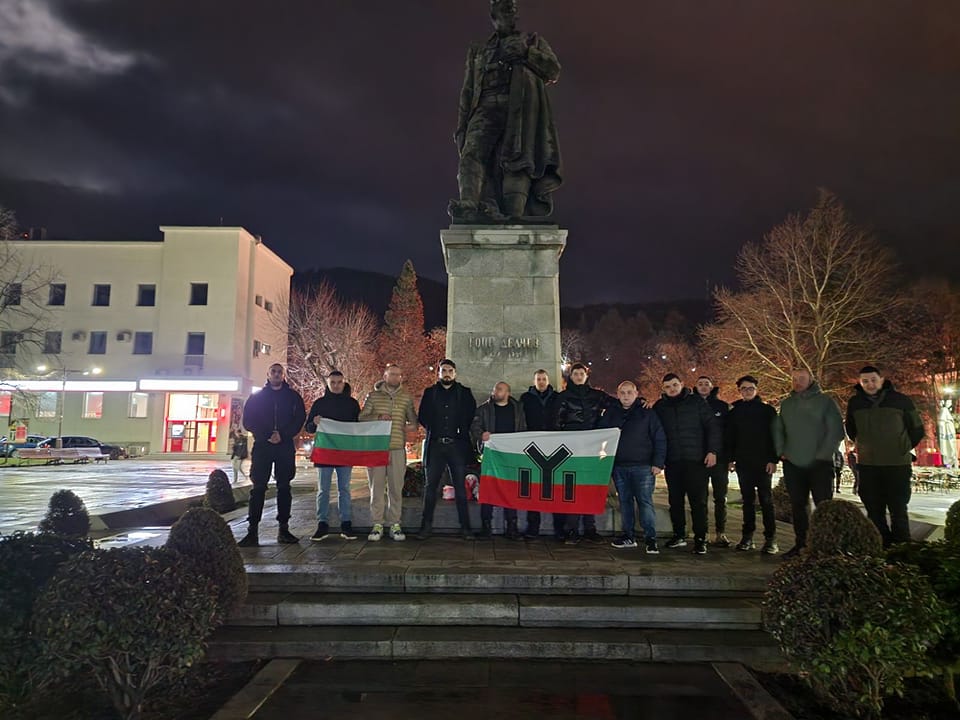 Варијанта на гореспоменатото знаме на фашистичка организација кое потсетува на симболот на СС дивизијата е забележано во Скопје на панихидата за Мара Бунева oрганизирана токму од Бугарскиот национален сојуз.