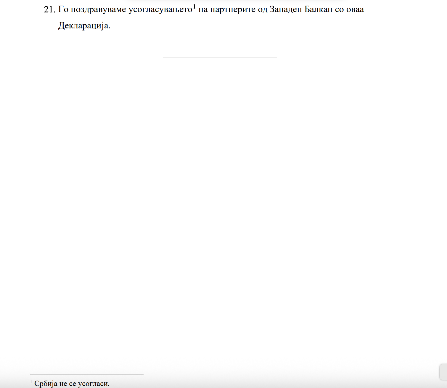 На документот кој е објавен и на македонски пишува дека сите страни се согласни на наведеното во делкарацијата.