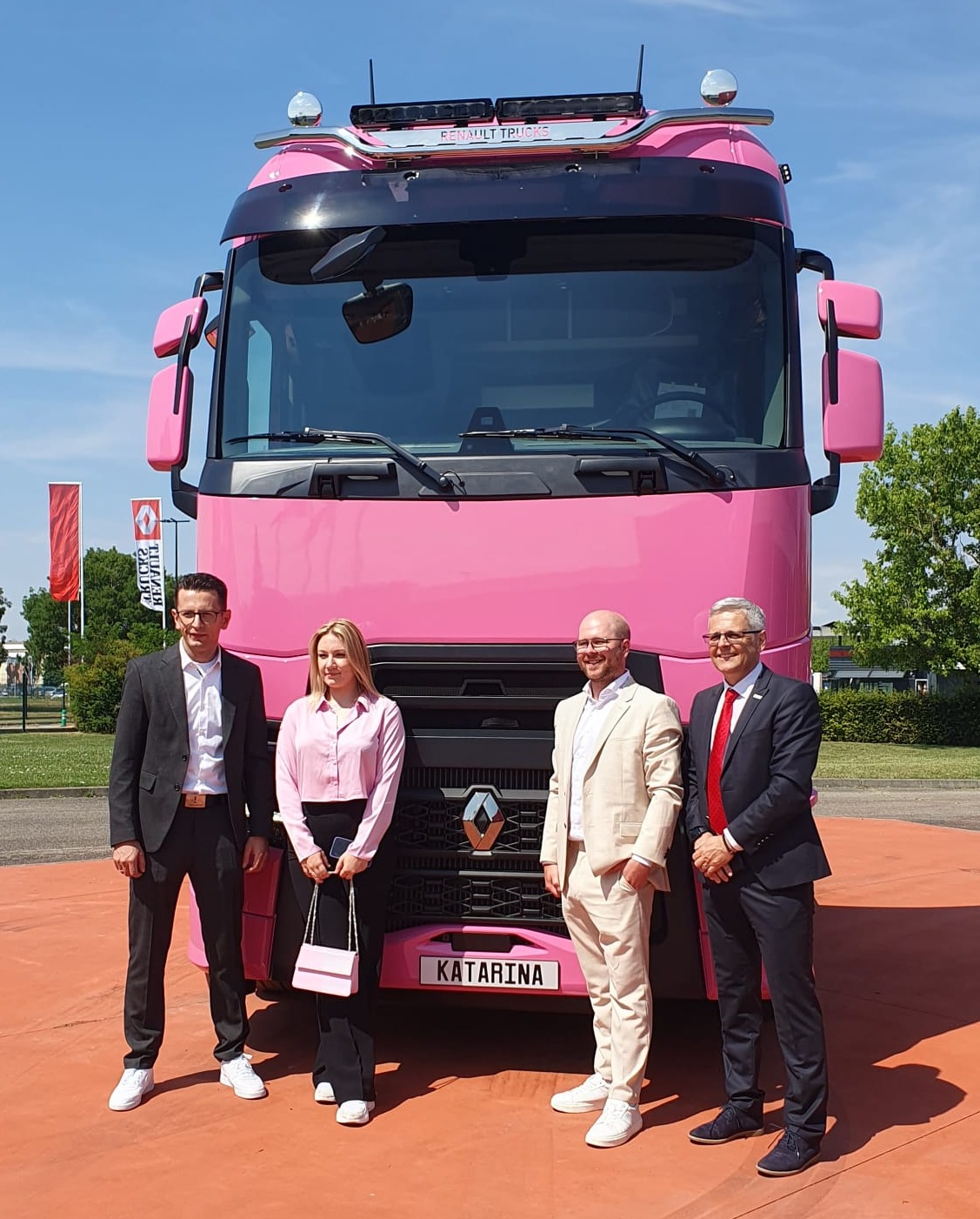Пред некое време Катарина, заедно со екипа од фирмата, беа поканети на четиридневно гостување во седиштето на Renault Truck, во Лион, Франција, каде го презедоа новиот розев убавец со кој ќе управува новосаѓанката.