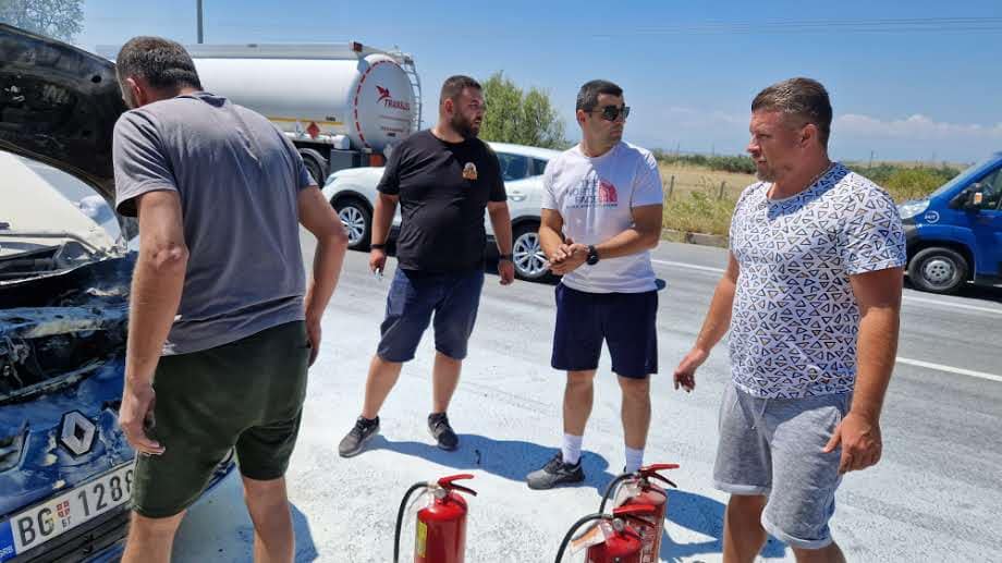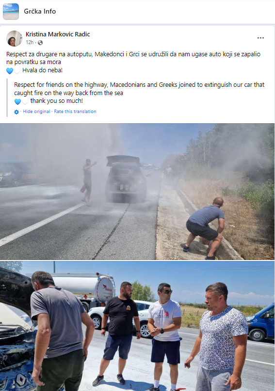 Почит за нашите пријатели на автопатот, Македонци и Грци се здружија да ни го изгаснат автомобилот што се запали на враќање од море“, порачаа од семејството.