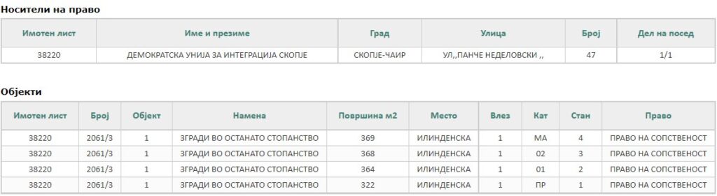 Имено, ДУИ го поседува објектот на катастарска парцела 2061/3 преку имотен лист 38220, додека земјиштето се уште се води во сопственост на државата преку имотен лист 38219.