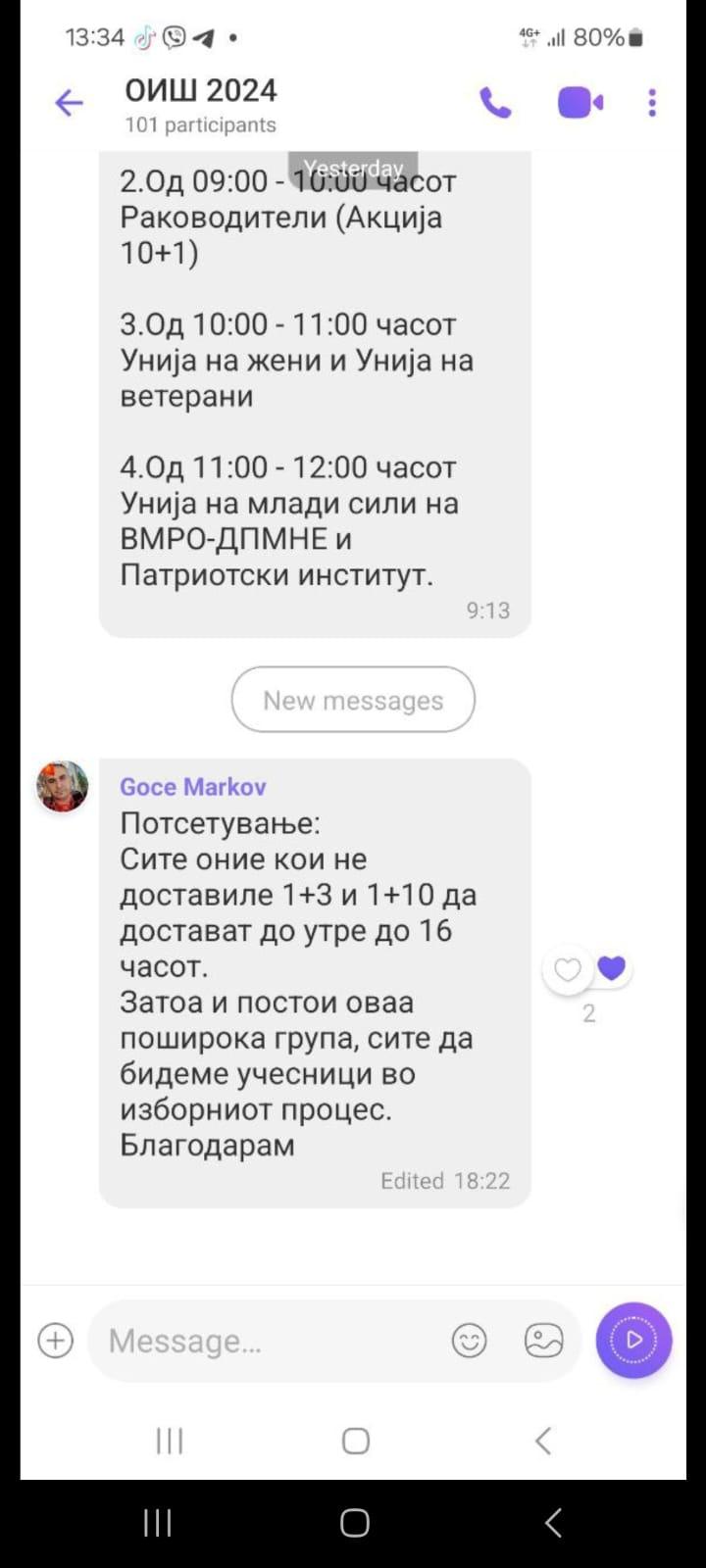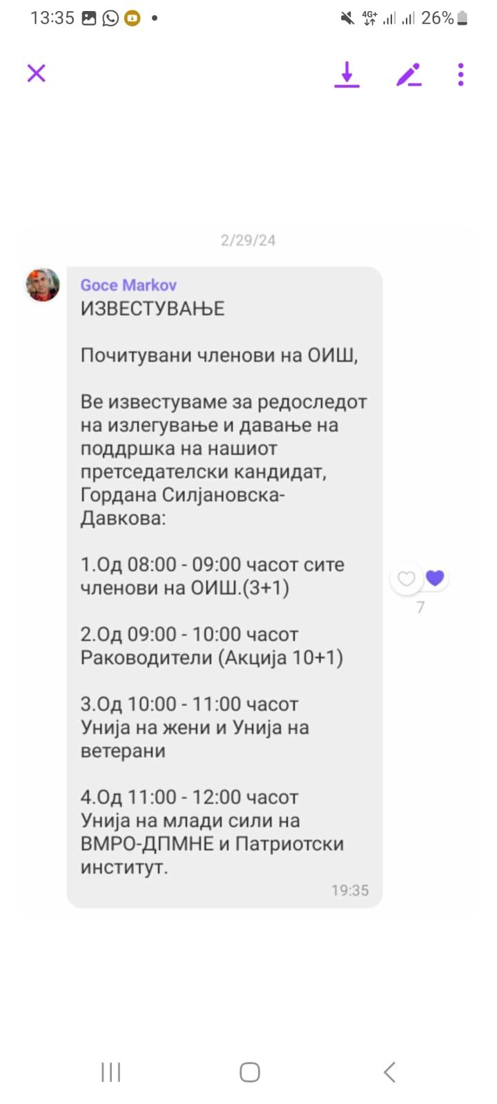 До редакцијата на Инфомакс пристигнаа ексклузивни информации од различни Вибер групи на партијата ВМРО-ДПМНЕ на кои се гледа како се врши притисок врз членовите да дадат поддршка за избраникот на Мицкоски за претседателски кандидат.