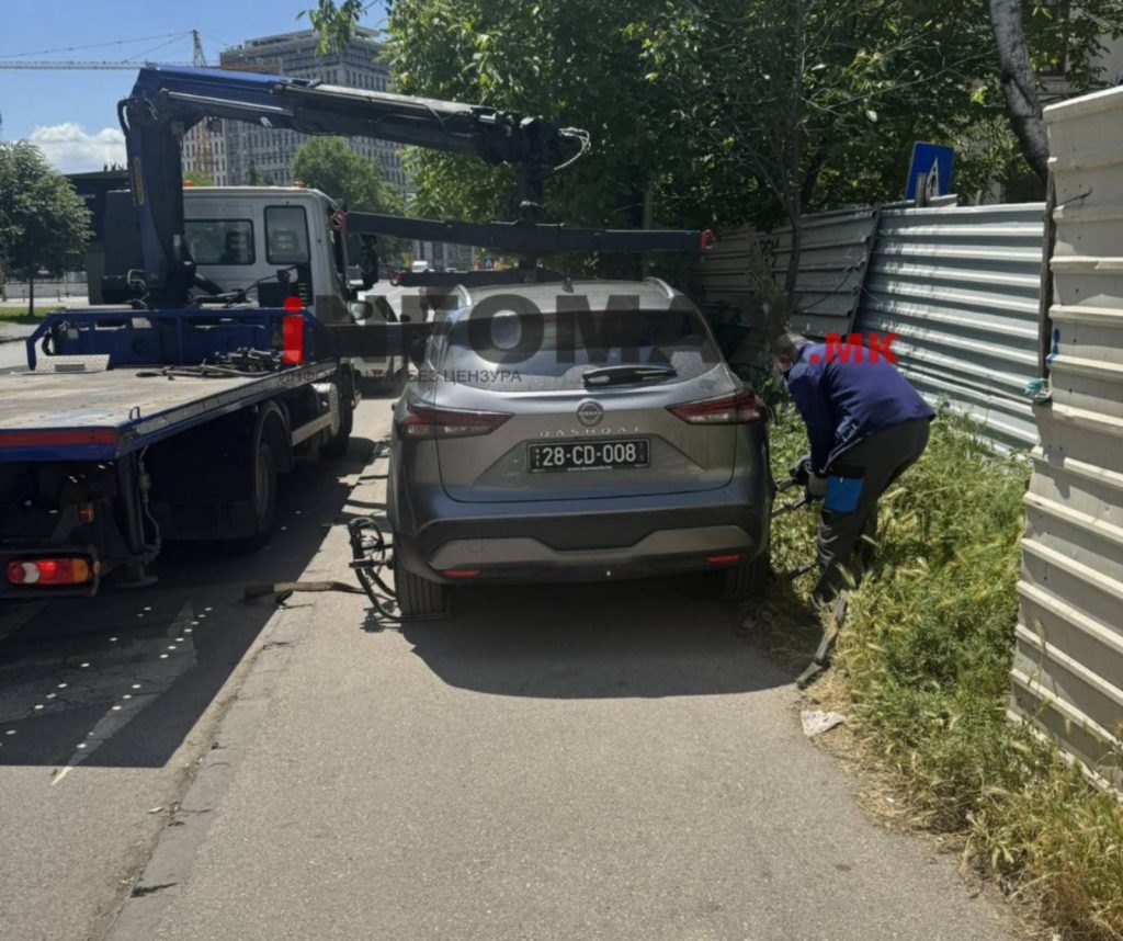 Пајак-службата на ЈП Паркинзи Скопје денес крена дипломатско возило кое било неправилно паркирано во центарот на Скопје.