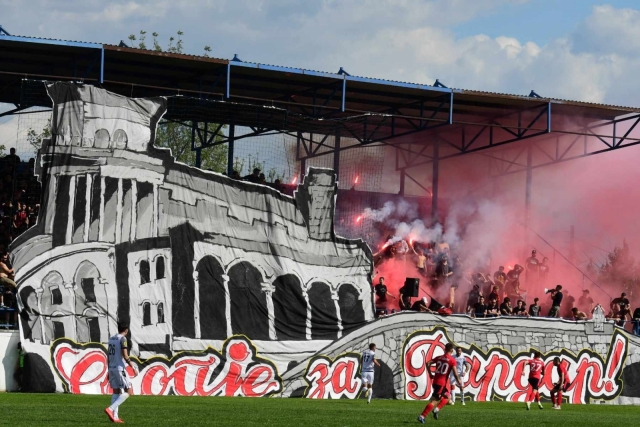 Навивачката група Комити за време на мечот меѓу Вардар и Струга направија импресивна кореографија.