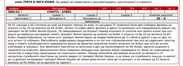 Кога помисливме дека во македонската кошарка не може да се случи нешто што би делувало шокантно во јавноста доаѓа информација за циркусот на третолигашкиот дуел помеѓу Спарта и Албес, кој не се доиграл поради општа тепачка на кошаркарите, тренерите и навивачите на гостинскиот тим и тоа – меѓу себе.