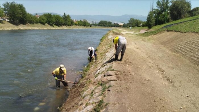 Екипите на ЈП Улици и патишта продолжуваат и во наредните денови по налог на Град Скопје да ги извршуваат активностите за рачно и машинско чистење и уредување на кејот на река Вардар.