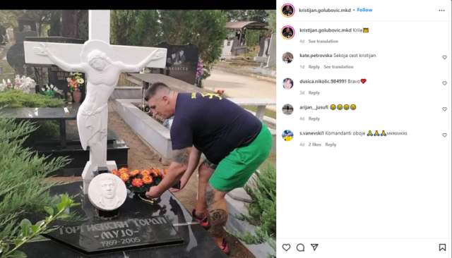 На еден од многуте официјални и неофицијални профили на Голубовиќ на Инстаграм, објавена е и фотографија на која положува свежо цвеќе на гробот на командантот на расфромираната единица за брза интервенција „Лавови“ Горан Георгиевски Мујо.