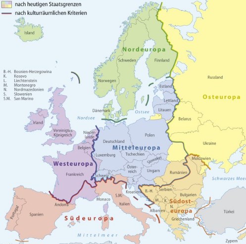 „Голема карта на поделба на Европа според културно-просторни критериуми“ сподели на Твитер луксембуршкиот политиколог Флоријан Бибер со коментар дека ја цени „германската прецизност“, но дека идејата може да повлече јасни граници меѓу културните области.