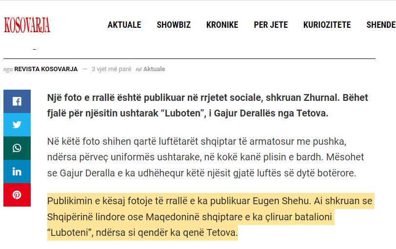 Истиот Шеху пишува и дека источна Албанија или албанска Македонија ја ослободил баталјонот „Луботени“…