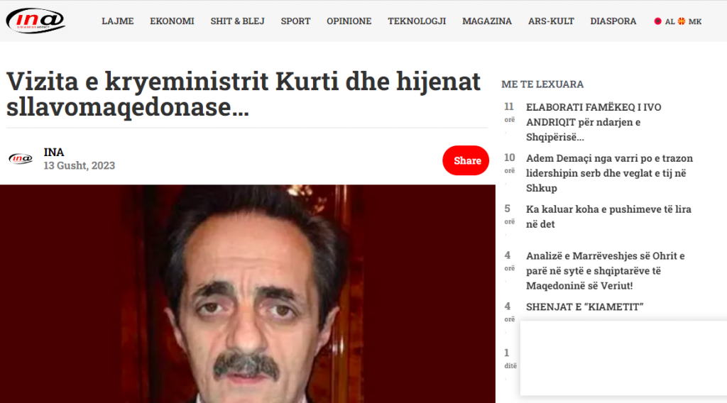 Посетата на премиерот на Република Косово, г-дин Албин Курти, на албанска Македонија, очигледно во овие години ја раздвижи заспаната албанофобија од македонска страна со сервилна политичка класа од албански јазик која им даваше утеха на славо-македонските власти во замена за некои индивидуални привилегии на некои политички функционери кои зборуваат албански,а кои никогаш во овие 22 години не ги допреа главните теми болни за Албанците но витални за иднината.