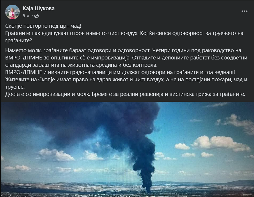 Жителите на Скопје имаат право на здрав живот и чист воздух, а не на постојани пожари, чад и труење.