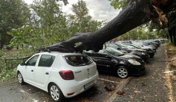 (Фото) Дрво падна врз автомобил кај ТЦ…
