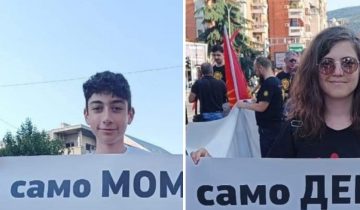 (Фото) Момче и девојче со два транспаренти…