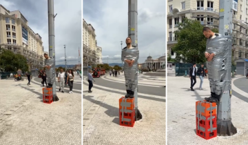 (Видео) Герила на Плоштад: Човек се залепи…