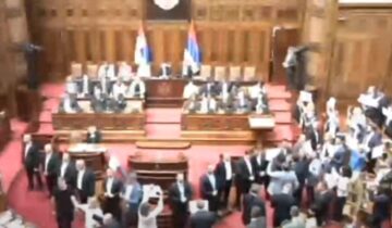 (Видео) Хаос во српското Собрание: Опозицијата ја…