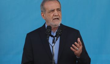 Иранскиот претседател Масуд Пезешкијан, во говорот по…
