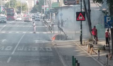 (Фото) Запален контејнер спроти УЈП