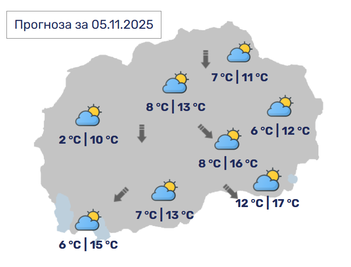 Од управата за хидрометеоролошки работи известуваат дека времето денеска ќе биде променливо облачно со сончеви периоди.