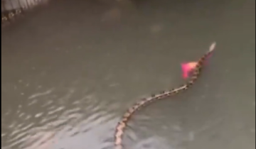 (Видео) Џиновски питони пливаат по поплавените улици…