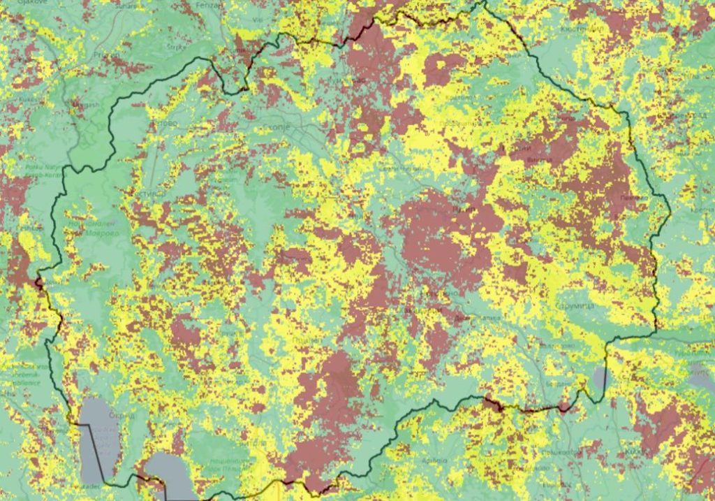 🔴 Висока сувост на вегетацијата – во повисоките планински предели, што укажува на висока ранливост на вегетацијата и потенцијал за појава на пожари