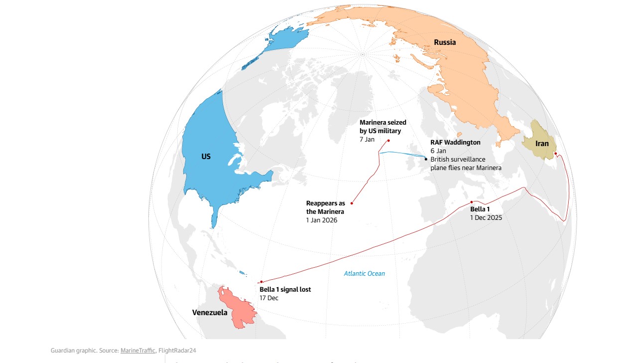 „Маринера“ е меѓу десетината танкери за нафта што се обидуваат да избегаат од блокадата. Избегна заробување во Карипското Море во декември, го смени името од „Бела 1“ и го смени курсот кон северна Русија пред да биде запленет во средата додека пловеше во ледениот Атлантик.